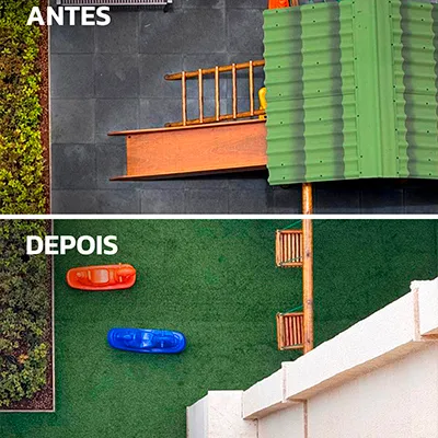 Não. Quando o terreno é devidamente preparado, com nivelamento e sistema de escoamento, não há acúmulo de água. Nossa equipe cuida dessa parte para garantir a drenagem correta e o uso tranquilo da área.